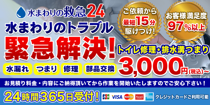 水の救急24は顧客満足度97%を誇る人気のトイレつまり修理業者です。