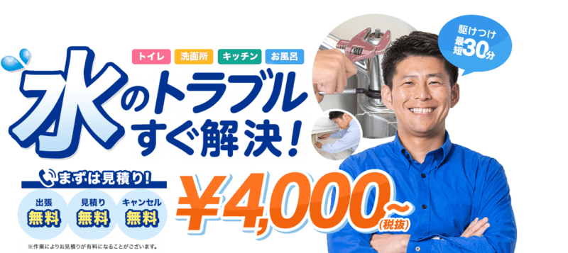 トイレだけでなく、お風呂、キッチン、洗面所など水回りのトラブルならなんでも対応してくれます。