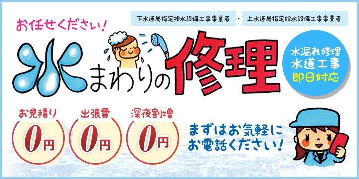 水道局指定工事店(地域による)なので、水漏れやリフォームで国の補助を利用したい方に特におすすめの業者です。